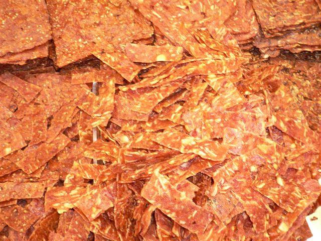 到南門市場的另一重頭戲是買豬肉乾,傳統的豬肉乾又鹹又香已經很好吃了,最近幾年業者又研發出薄如紙的杏仁芝麻肉纸,脆脆的口感讓人吃個不停,反正,過年就把體重擺旁邊啦!在南門市場滿載而歸,我倒數著過農曆新年的日子,心裡充滿著像孩子一般的期待…..。